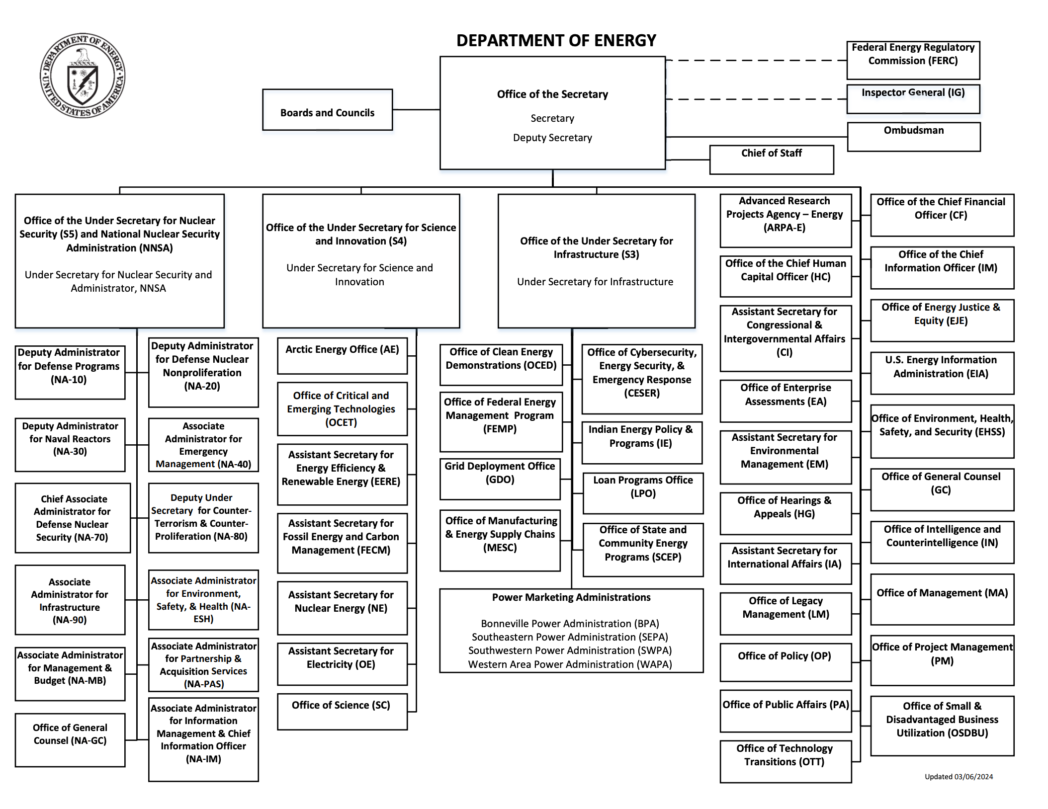 March 2024: DOE organizational structure prior to the 2025 realignment. Source: DOE (March 2024)