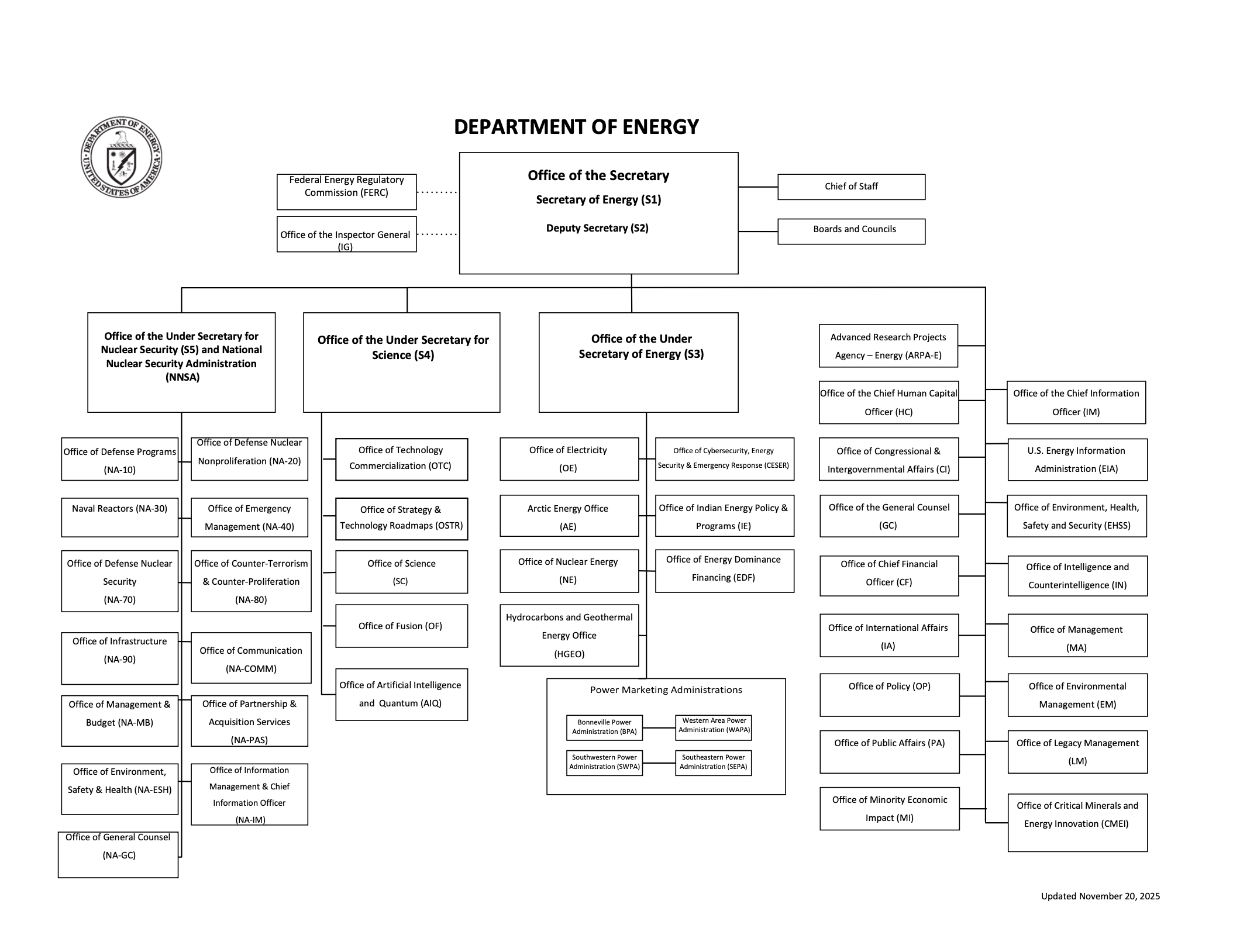November 2025: Revised DOE organizational chart after the realignment. Source: DOE (November 2025)